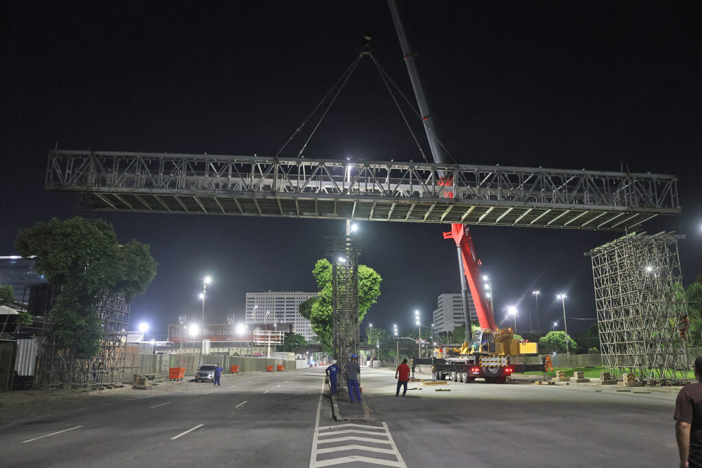Projetamos e montamos passarelas suspensas, com até 38 metros de vão, em estrutura metálica para garantir mobilidade, segurança e eficiência em áreas técnicas, industriais e eventos de grande porte.